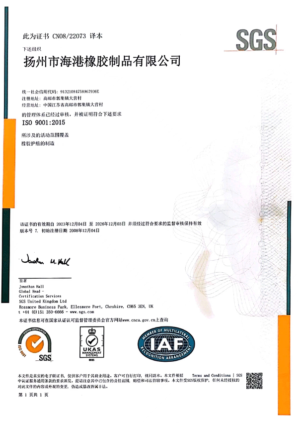凡在海港橡胶购买的产品享受提供的终身维护服务。